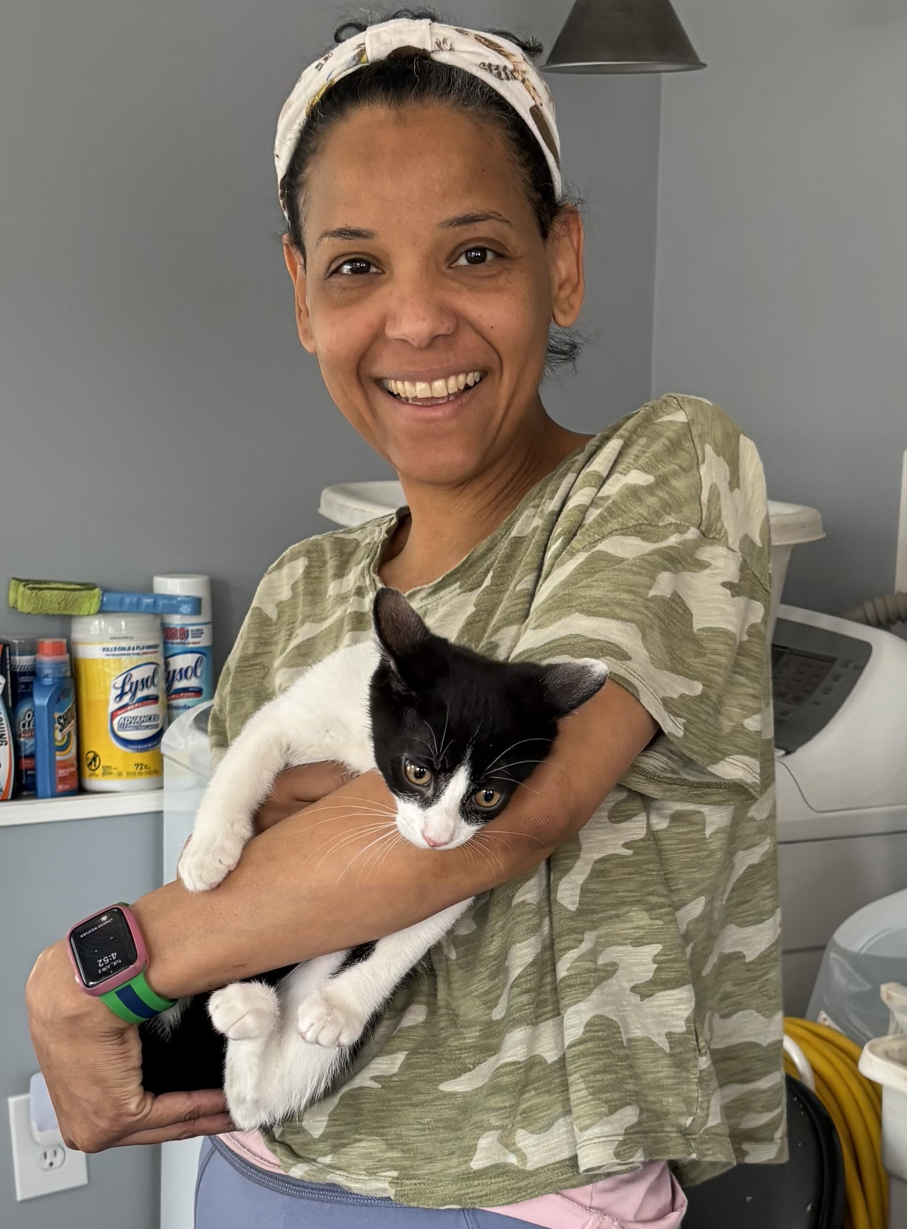 Adeline’s story began when she showed up at midnight at one of our foster colonies. She was hungry, confused, and frightened. Not having a carrier with her, the colony’s feeder was forced to leave Adeline. Feeling horrible about the events of that night, the feeder woke up very early to go back and find Adeline. Adeline had been waiting for her to return the entire night. Seeing the feeder, Adeline ran to her, purring…the rest is history!